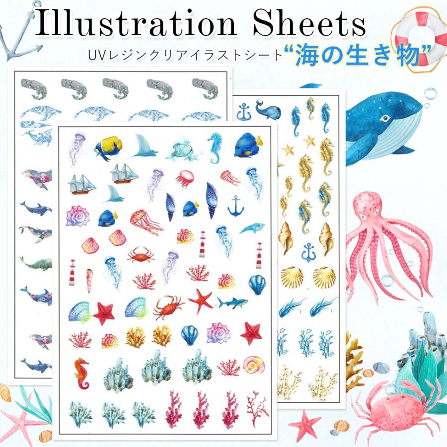 イラストシート 海の生き物 魚 クジラ クリアイラストシート メール便対応 マリンモチーフ イルカ カニ 貝殻 封入シート デコレーションシート Rsnsheet008 東京タカラネイル 通販 Yahoo ショッピング